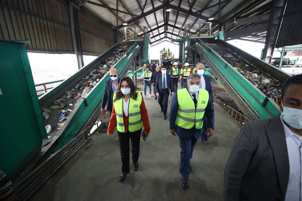 وزيرة التنمية المحلية والقائم بأعمال وزير البيئة ومحافظ الدقهلية يتفقدون مصنع معالجة وتدوير المخلفات بسندوب