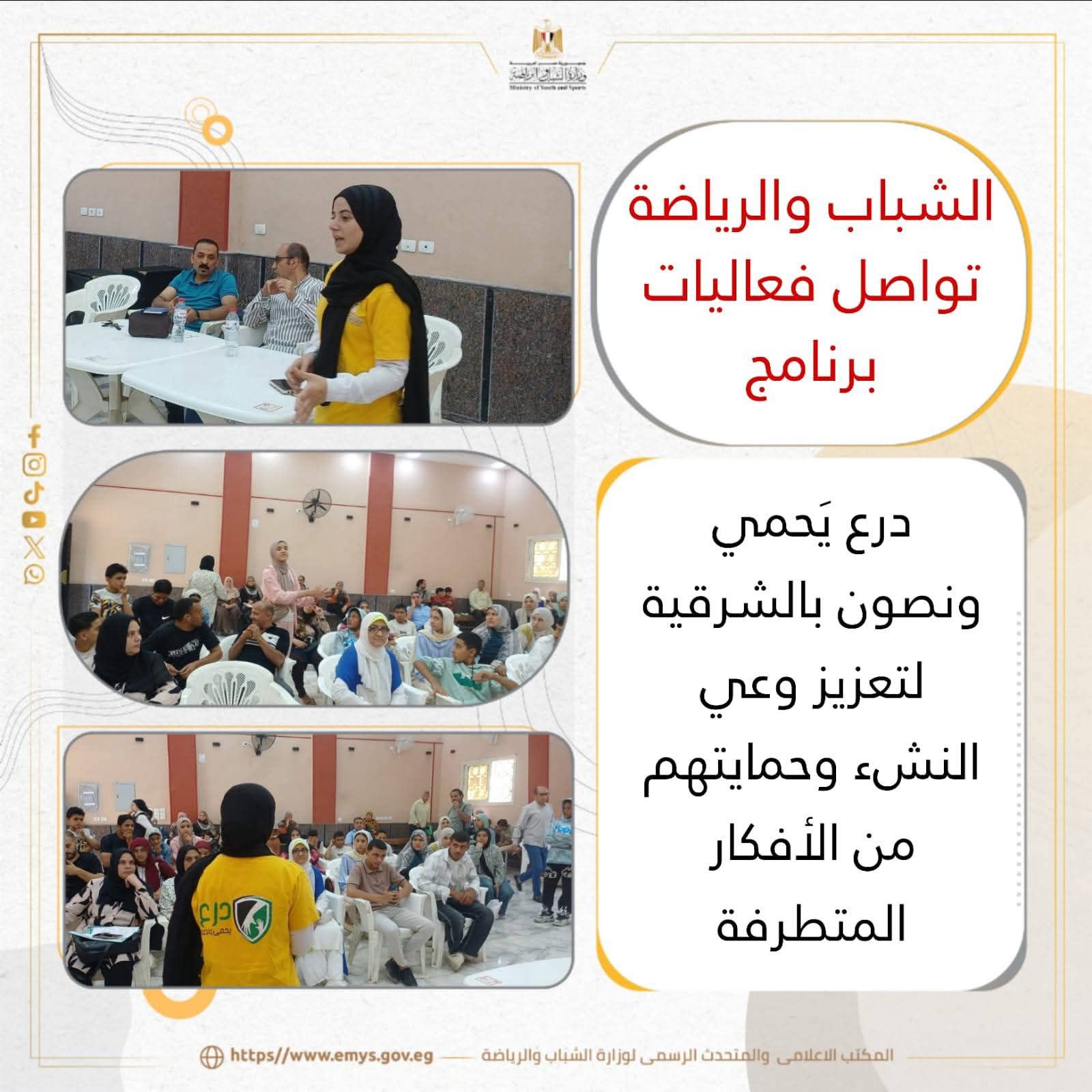 “الشباب والرياضة” تواصل فعاليات برنامج «درع يَحمي ونصون» بالشرقية لتعزيز وعي النشء وحمايتهم من الأفكار المتطرفة