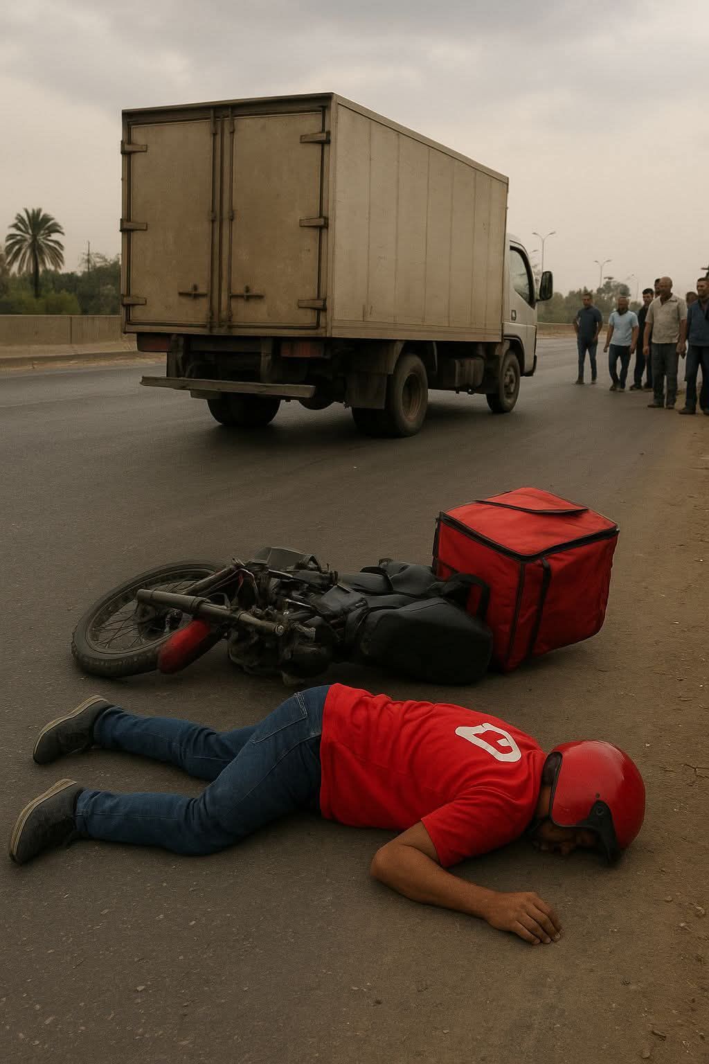 لقي عامل دليفري مصرعه في حادث مروع، بعد أن صدمته سيارة نقل تسير عكس الاتجاه على طريق الأوتوستراد.