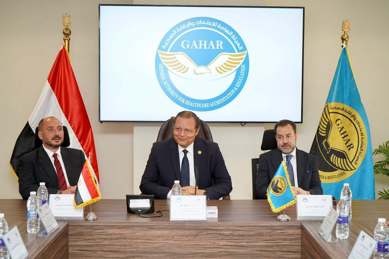 في إطار توجيهات فخامة الرئيس عبد الفتاح السيسي بتعزيز دور المستشفيات الجامعية داخل المنظومة الصحية والاستعداد للمرحلة الثانية من مشروع التأمين الصحي الشامل، استقبل الدكتور أحمد طه، رئيس الهيئة العامة للاعتماد والرقابة الصحية، بمقر الهيئة بالعاصمة الإدارية الجديدة، الدكتور عمر شريف عمر، أمين عام المجلس الأعلى للمستشفيات الجامعية، والدكتور أحمد عناني، عميد كلية طب الزقازيق ومستشار وزير التعليم العالي والبحث العلمي للسياسات الصحية، وذلك لبحث سبل التعاون المؤسسي وتطبيق معايير الجودة والاعتماد بالمستشفيات الجامعية.