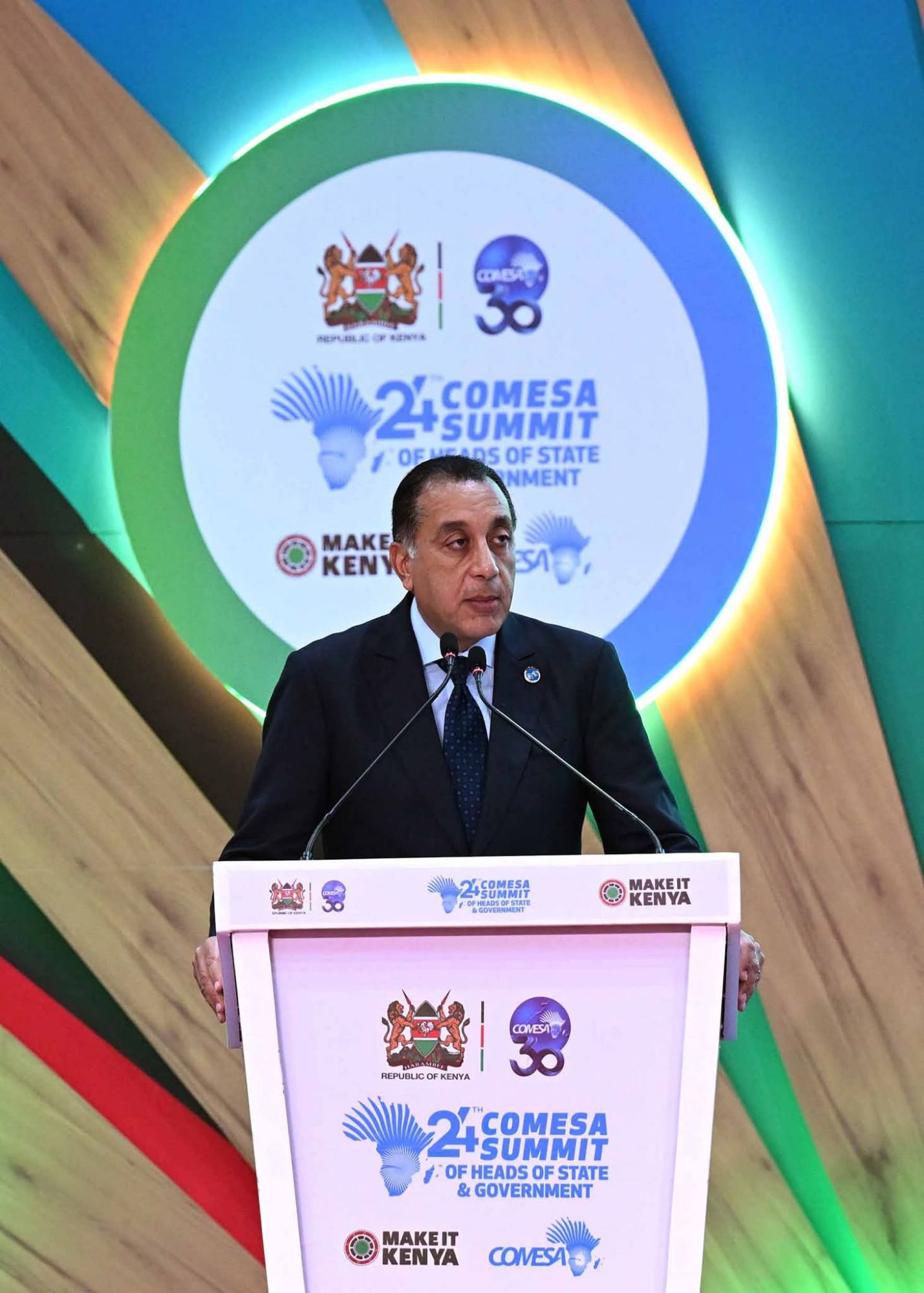 وفي بداية حديثه، أعرب رئيس مجلس الوزراء عن خالص تقديره للأمانة العامة للكوميسا على عرض التقارير المذكورة، والمتضمنة اتفاقية التجارة الحرة الثلاثية، وحرية تنقل المستثمرين ورجال الأعمال، واتفاقيات الاعتراف المتبادل لتعزيز التجارة في السلع، وذلك باعتبارها آليات مهمة؛ لتعزيز التكامل الإقليمي بين دول الكوميسا ودول القارة الأفريقية في إطار رؤيتنا الطموحة 2063.