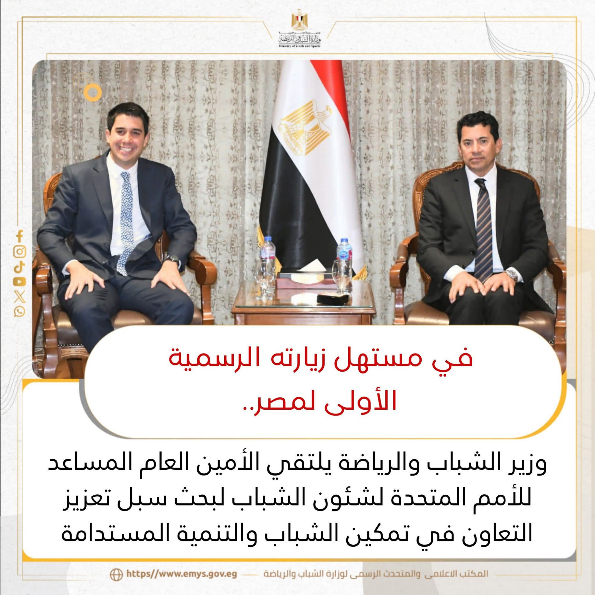 وزير الشباب والرياضة يلتقي الأمين العام المساعد للأمم المتحدة لشئون الشباب لبحث سبل تعزيز التعاون في تمكين الشباب والتنمية المستدامة