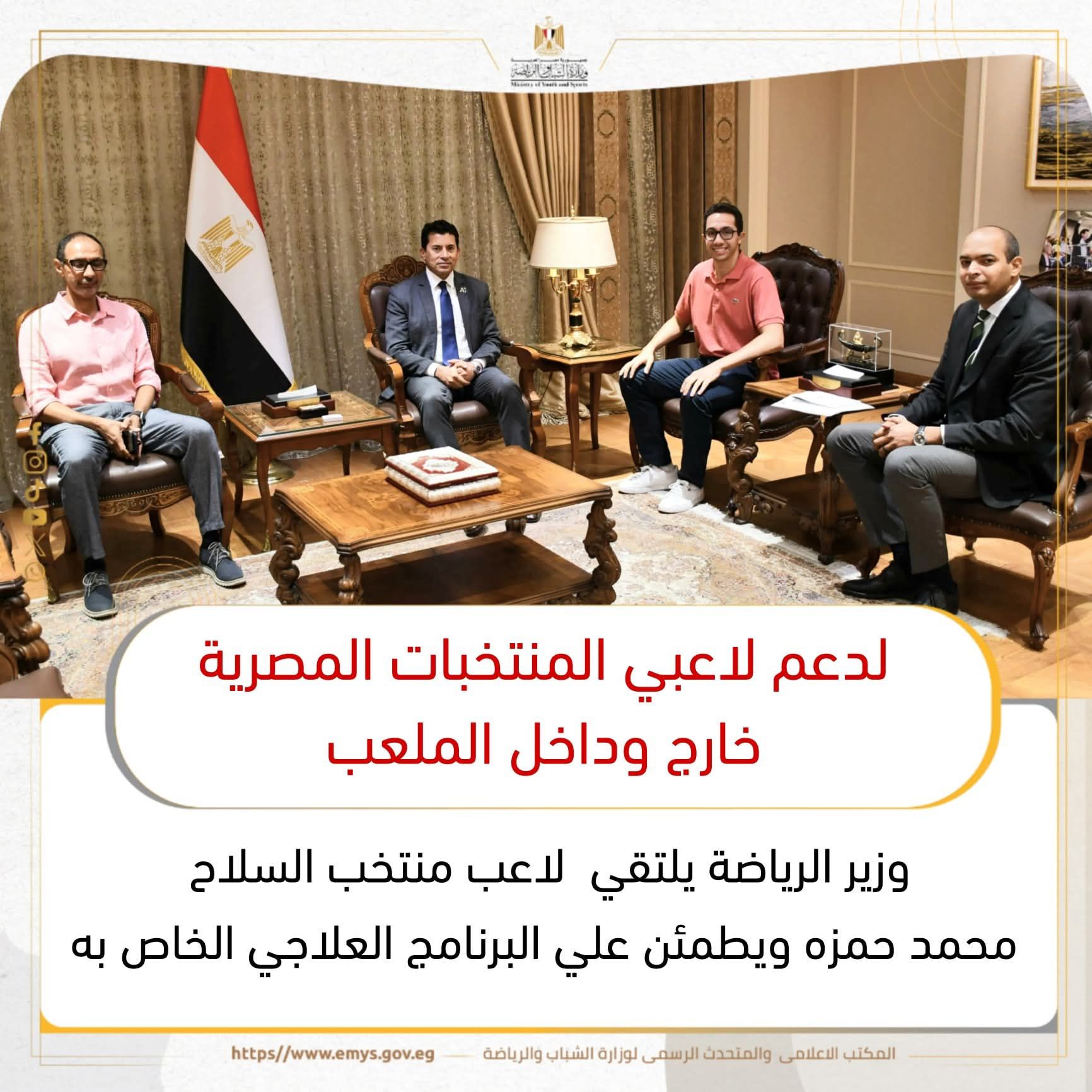 لدعم لاعبي المنتخبات المصرية خارج وداخل الملعب***وزير الرياضة يلتقي لاعب منتخب السلاح محمد حمزه ويطمئن علي البرنامج العلاجي الخاص به*