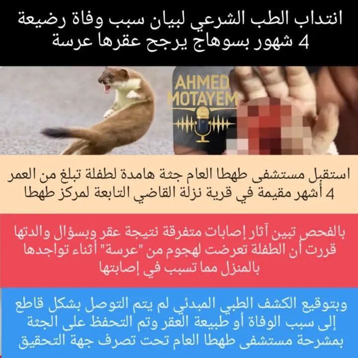حوادث منال سعيد 15 أكتوبر، 2025 وفاه رضيعه 4 شهور 🔴انتـ.ـداب الطب الشرعي لبيان سبب وفـ.ـاة رضيعة 4 شهور بسوهاج