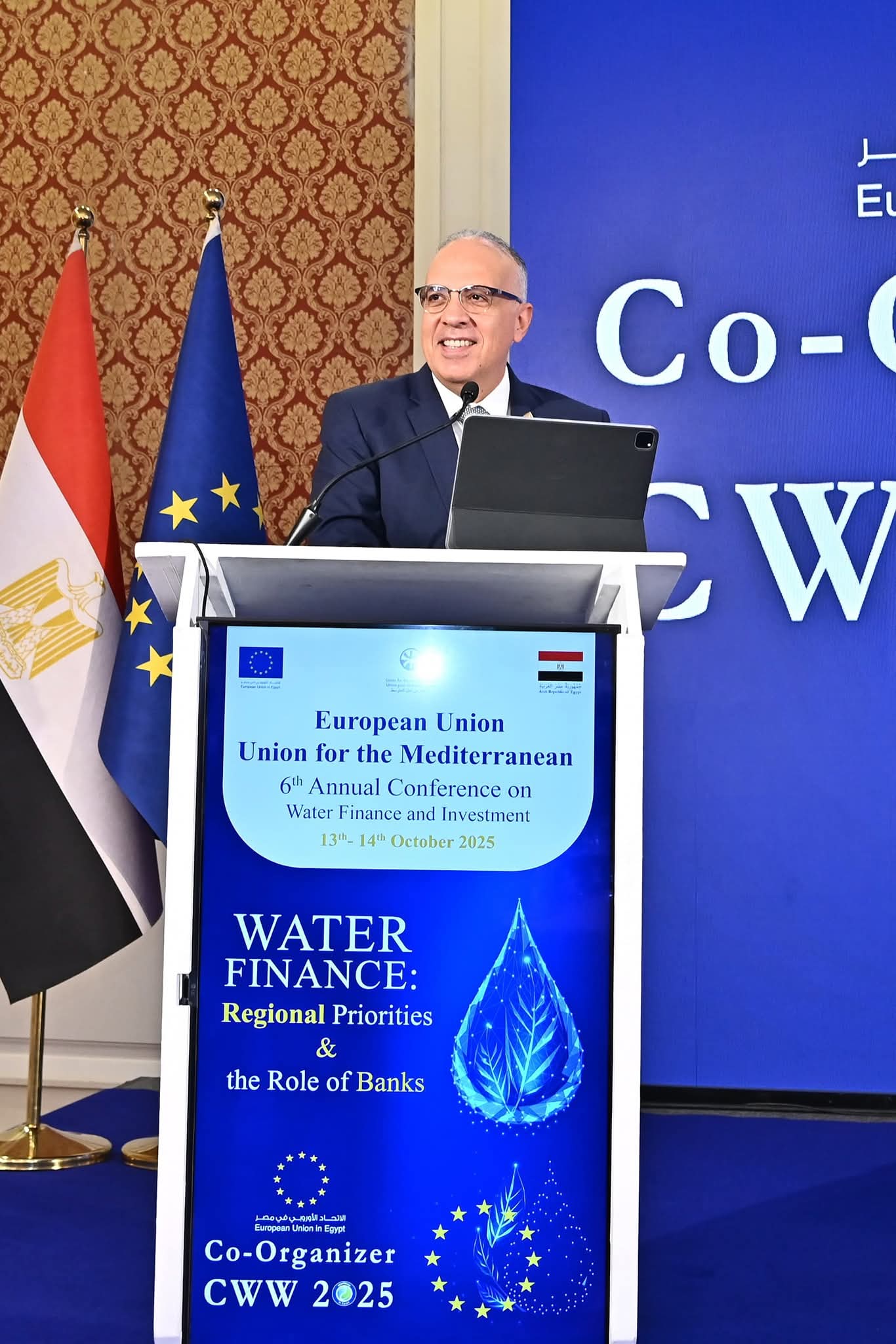 ضمن فعاليات “إسبوع القاهرة الثامن للمياه” .. شارك السيد الأستاذ الدكتور/ هانى سويلم وزير الموارد المائية والرى فى “المؤتمر السنوي السادس للتمويل والاستثمار فى قطاع المياه”، والمنعقد تحت عنوان “تمويل المياه .. الأولويات الإقليمية ودور البنوك”، بتنظيم مشترك من وزارة الموارد المائية والري والإتحاد الأوروبي والإتحاد من أجل المتوسط .