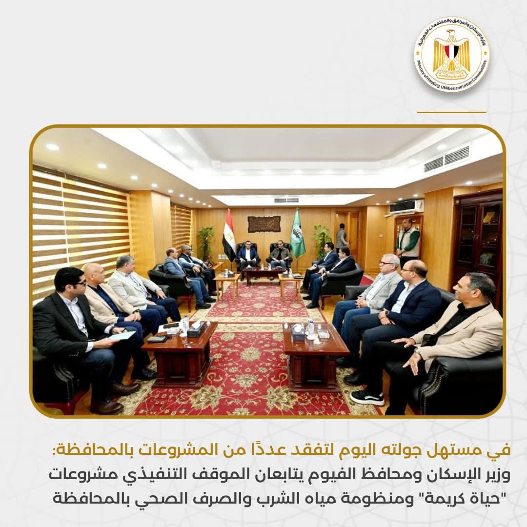 وزير الإسكان ومحافظ الفيوم يتابعان الموقف التنفيذي مشروعات “حياة كريمة” ومنظومة مياه الشرب والصرف الصحي بالمحافظة