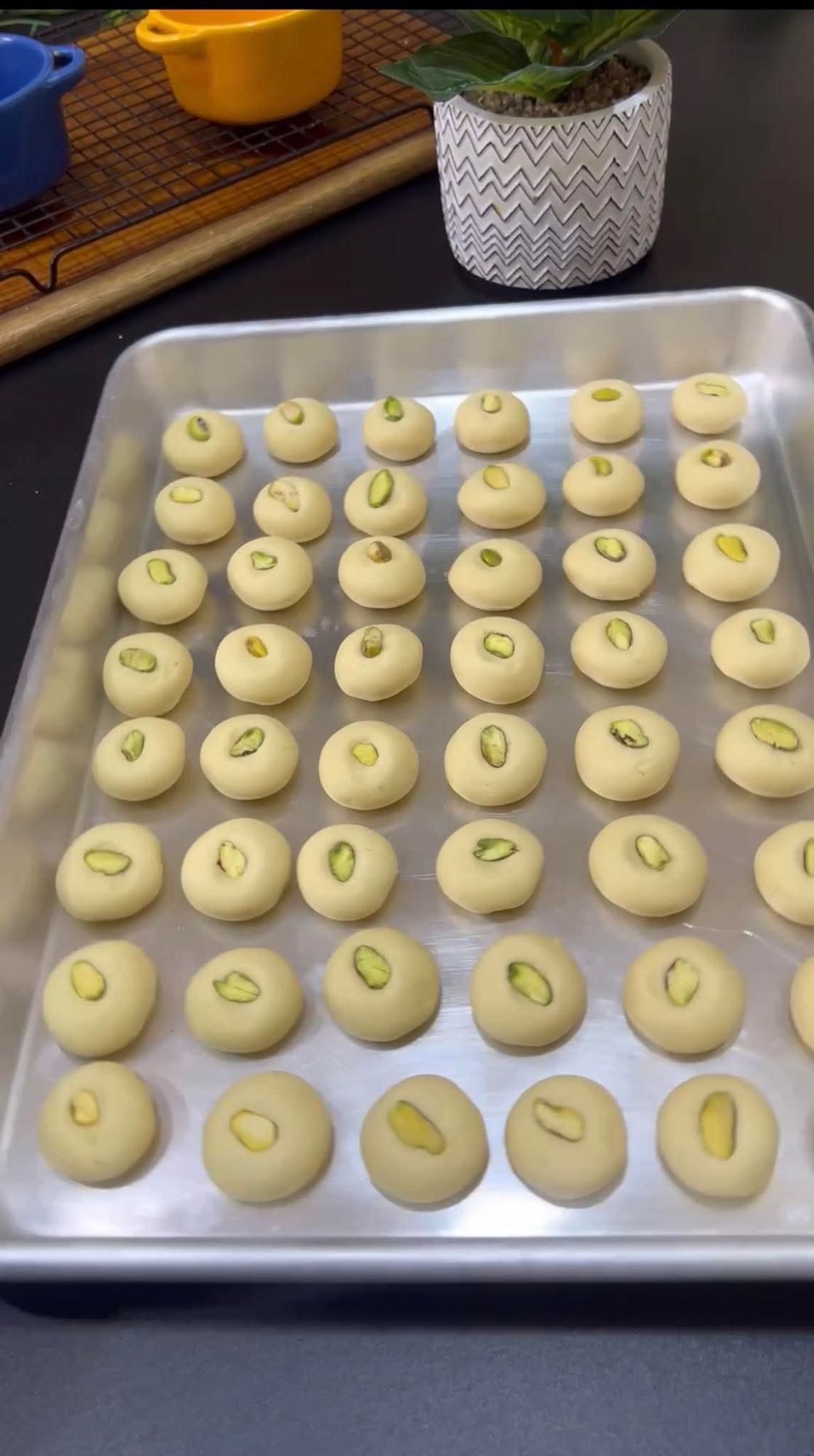 - بعد ما بعجن وبشكل وبرص الغريبه لازم أدخلها التلاجة على الأقل ١٠ دقايق على ما الفرن يسخن ، عشان السمنة بتكون سخنت وساحت من حرارة ايدينا أثناء عملية التشكيل.