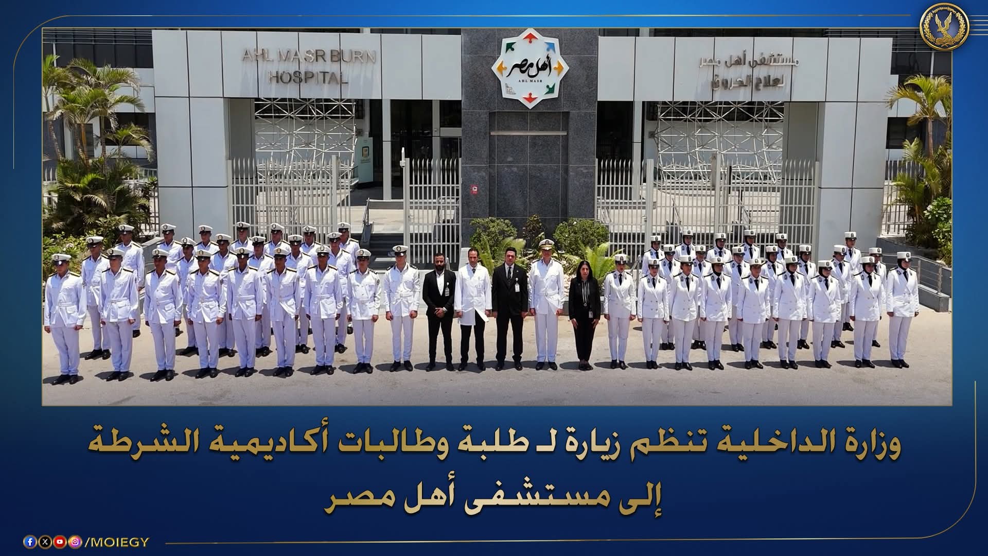 فى إطار حرص وزارة الداخلية على ترسيخ مبادىء المشاركة المجتمعية وتعزيز روح الإنتماء والمسئولية لدى طلبة وطالبات أكاديمية الشرطة قام وفد من الكلية بزيارة لمستشفى #أهل_مصر لعلاج الحروق إحدى أبرز المؤسسات الرائدة فى مجال علاج الحروق فى مصر والشرق الأوسط وخلال الزيارة قام الطلاب بزيارة داخل أقسام المستشفى المختلفة وإستمعوا إلى شرح حول ألية تقديم الرعاية الطبية والنفسية لمرضى الحروق.
