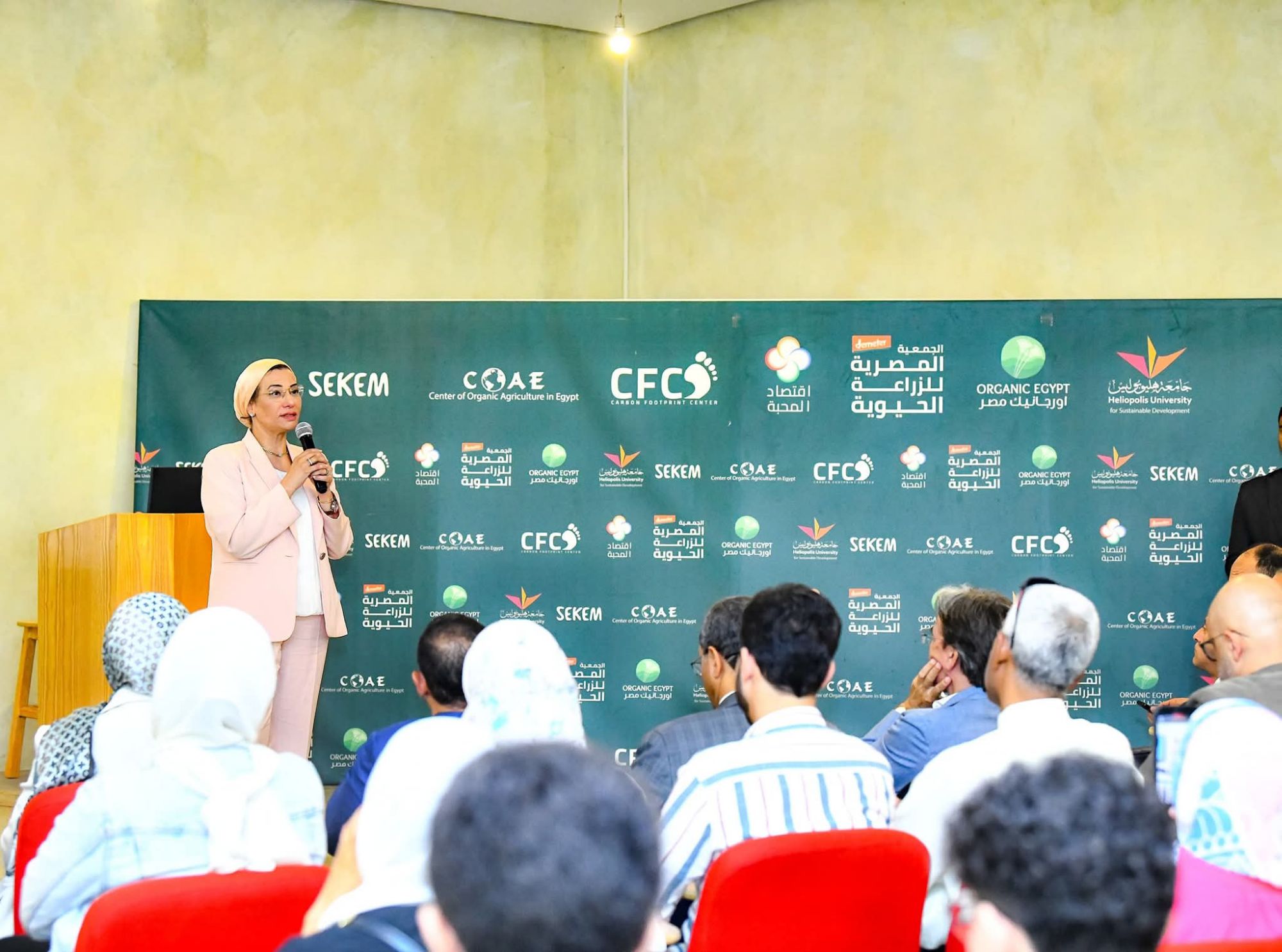 جاء ذلك خلال مشاركة الدكتورة ياسمين فؤاد وزيرة البيئة، فى إحتفالية أبطال المناخ من المزارعين المصريين بمنتدى تأثير اقتصاد المحبة على التنمية المجتمعية فى مصر والذي نظمته جامعة هليوبوليس بالتعاون مع الجمعية المصرية للزراعة الحيوية وشركة سيكم القابضة، والاحتفال بالشركاء أبطال المناخ من المزارعين المصريين من محافظات (دمياط ـ المنيا ـ قنا ـ الأقصر ـ أسوان)، وذلك بحضور الدكتور خالد عبد الحليم محافظ قنا، والمهندس عمرو لاشين نائب محافظ أسوان، والدكتور محمد أبوزيد نائب محافظ المنيا، والأستاذ حلمي أبو العيش، رئيس مجلس إدارة مجموعة سيكم القابضة، ورائد الزراعة العضوية في مصر، ومؤسس مبادرة اقتصاد المحبة، وبمشاركة نخبة من الشخصيات البارزة فى مجالات الزراعة والتنمية المستدامة والسادة وكلاء الزراعة والبيئة بالمحافظات ، عدد من المزارعين بمحافظات مصر.