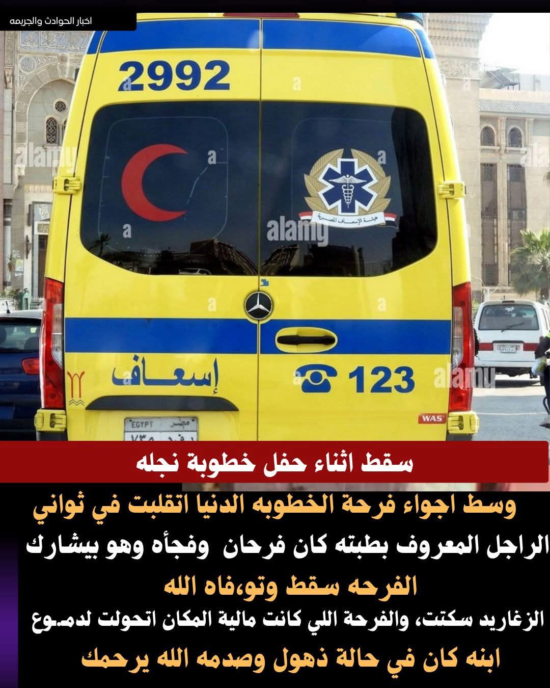 في صباحٍ كان يُفترض أن يكون بداية حياة جديدة، تحوّل الفرح إلى صد،.مةٍ تهزّ القلوب في قرية الفيما بمحافظة أسيوط. يوم الزفاف لم يمر بسلام، فبعد ساعات قليلة من ليلة العمر، تبدّل البيت المزيّن بالورود إلى مسرح لمـ ـأسـ ـاة مؤلـ ـمـ ـة هزّت الجميع 💔.