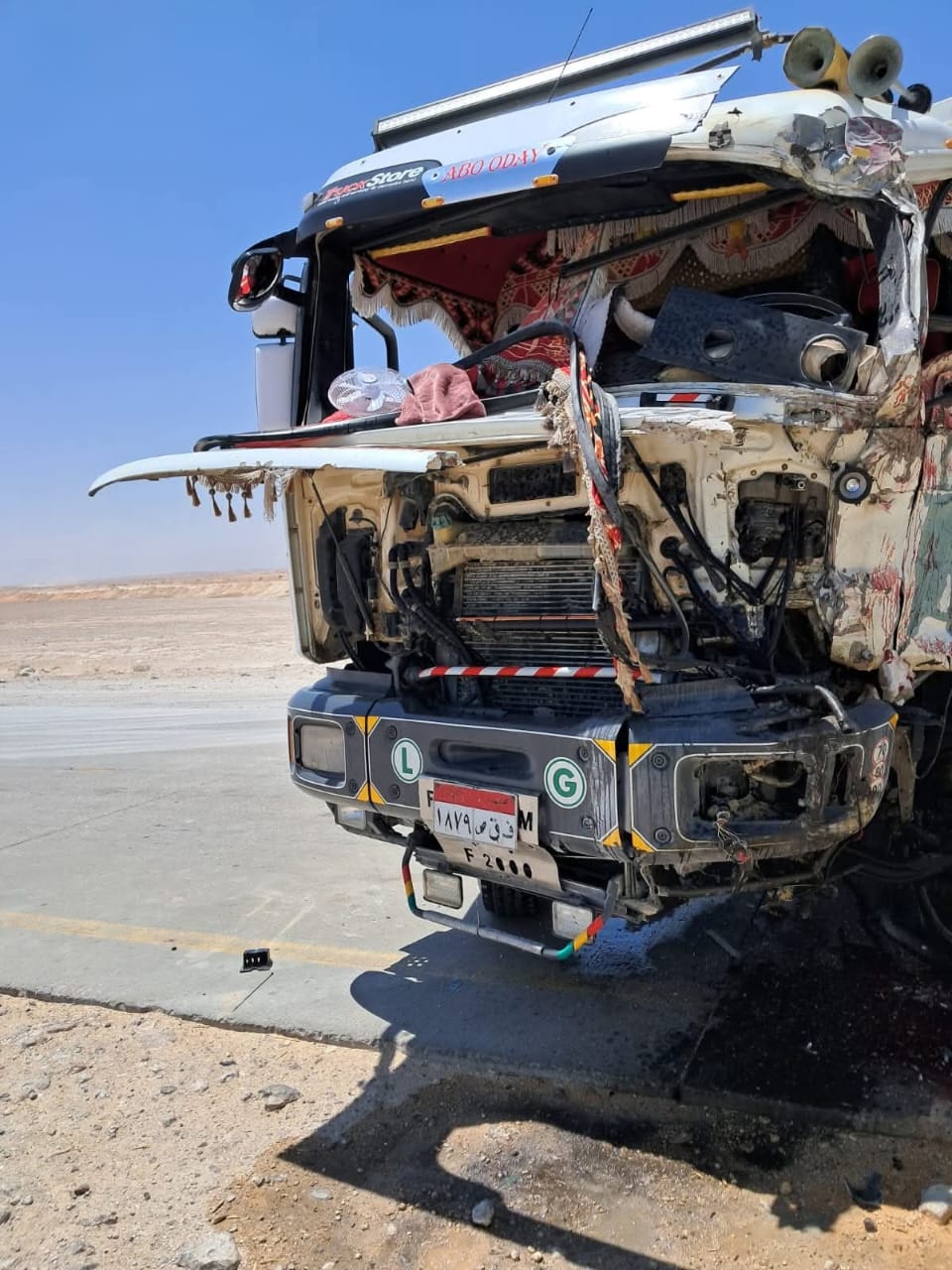 إصابة شخصين في حادث تصادم سيارتي نقل بطريق السويس - وصلة أم قمركتب ... محمد…