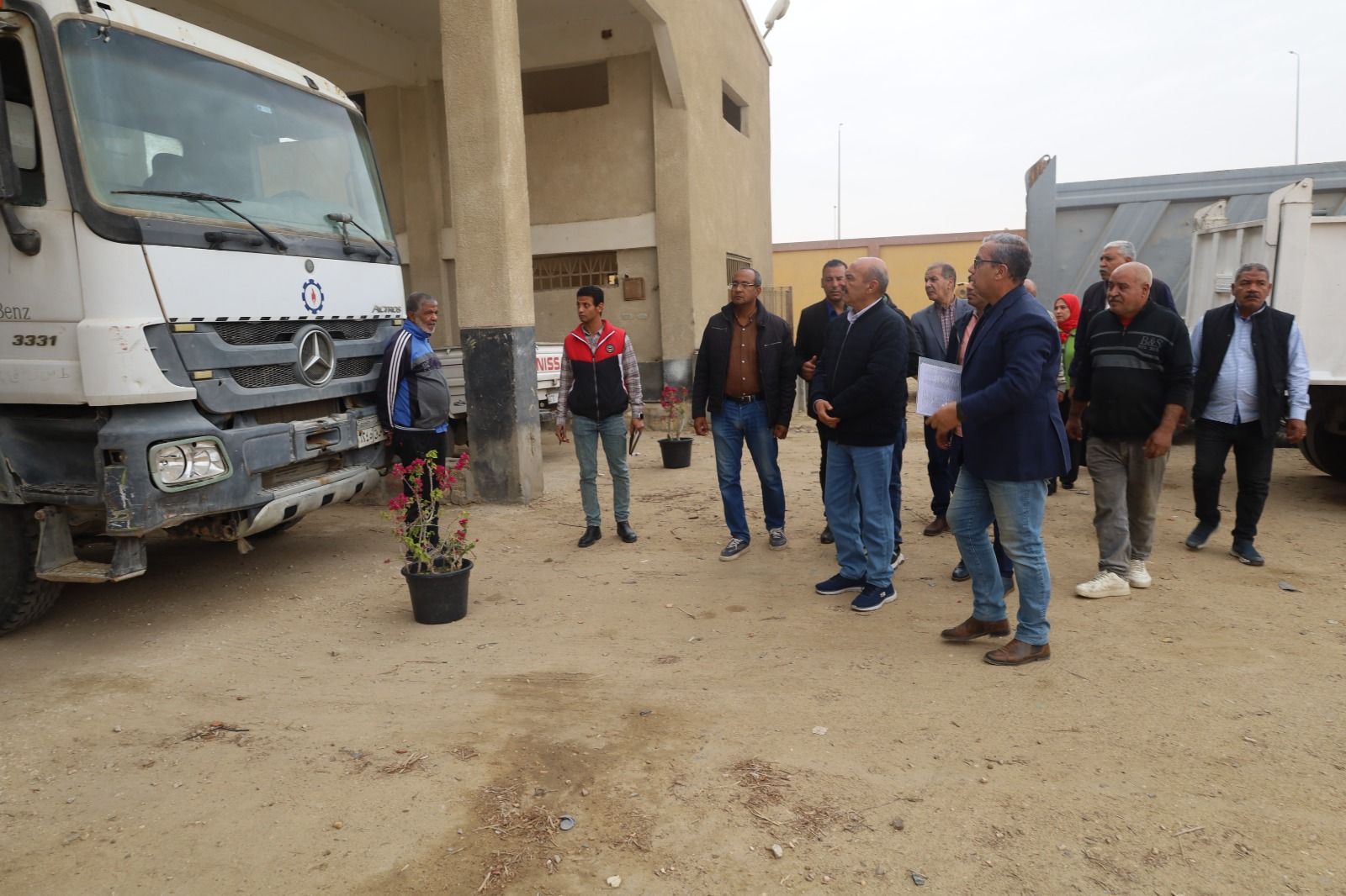 محافظ السويس يتابع سير العمل بجراج جهازي التجميل والنظافة