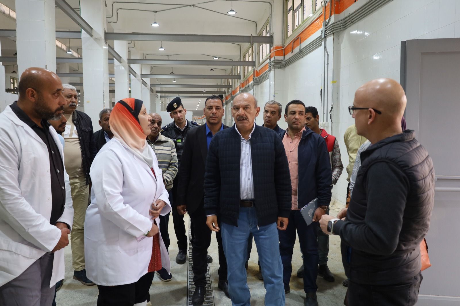 محافظ السويس يتابع اعمال تطوير المجزر الآلي بقرية الألبان الجديدة بحي فيصل
